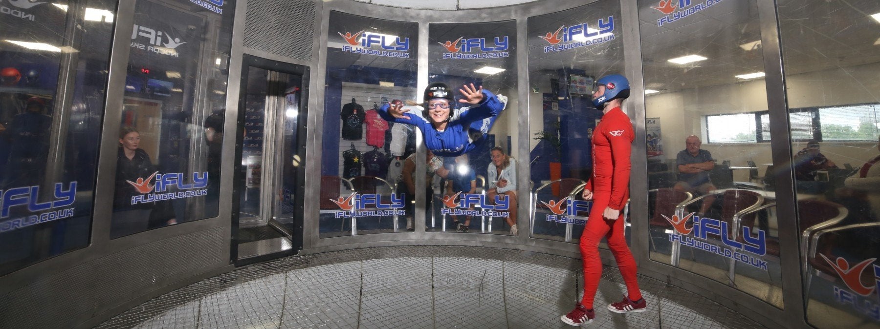 Das iFLY Indoor Skydiving centre in Manchester hat einen 4 Meter Windkanal gebaut und wir hatten die Ehre, dort unser erstes Skydiving Erlebnis in die Tat umzusetzen.